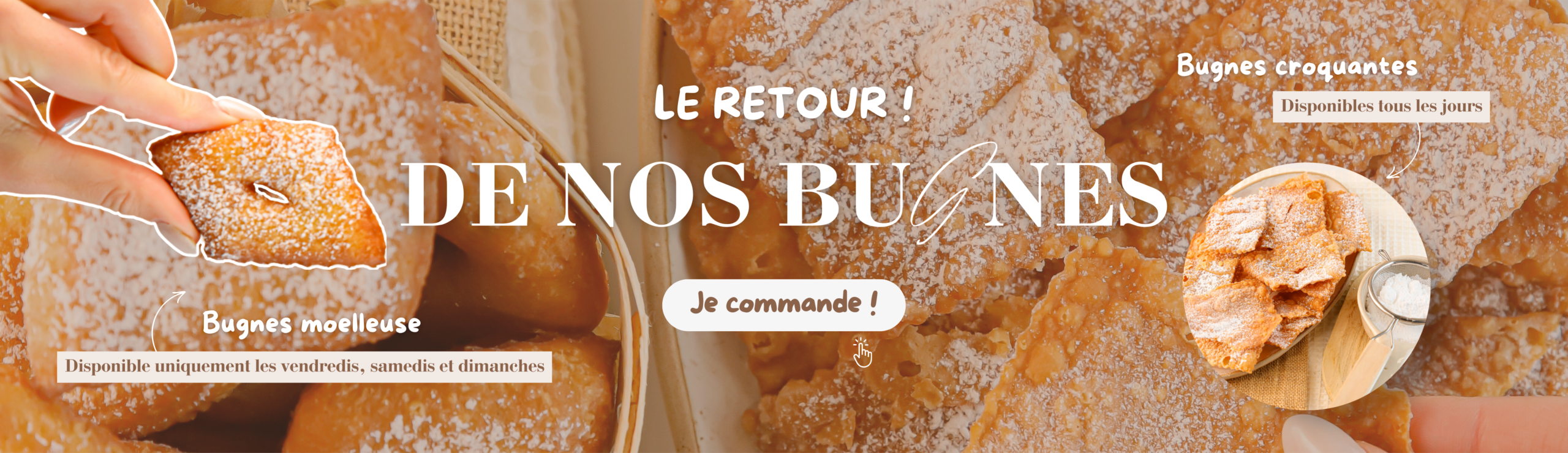 Disponibles tous les jours en boutique pour les bugnes fines, et les vendredis, samedis et dimanches pour les bugnes moelleuses, elles sont parfaites pour se faire plaisir ou partager un moment gourmand en famille.