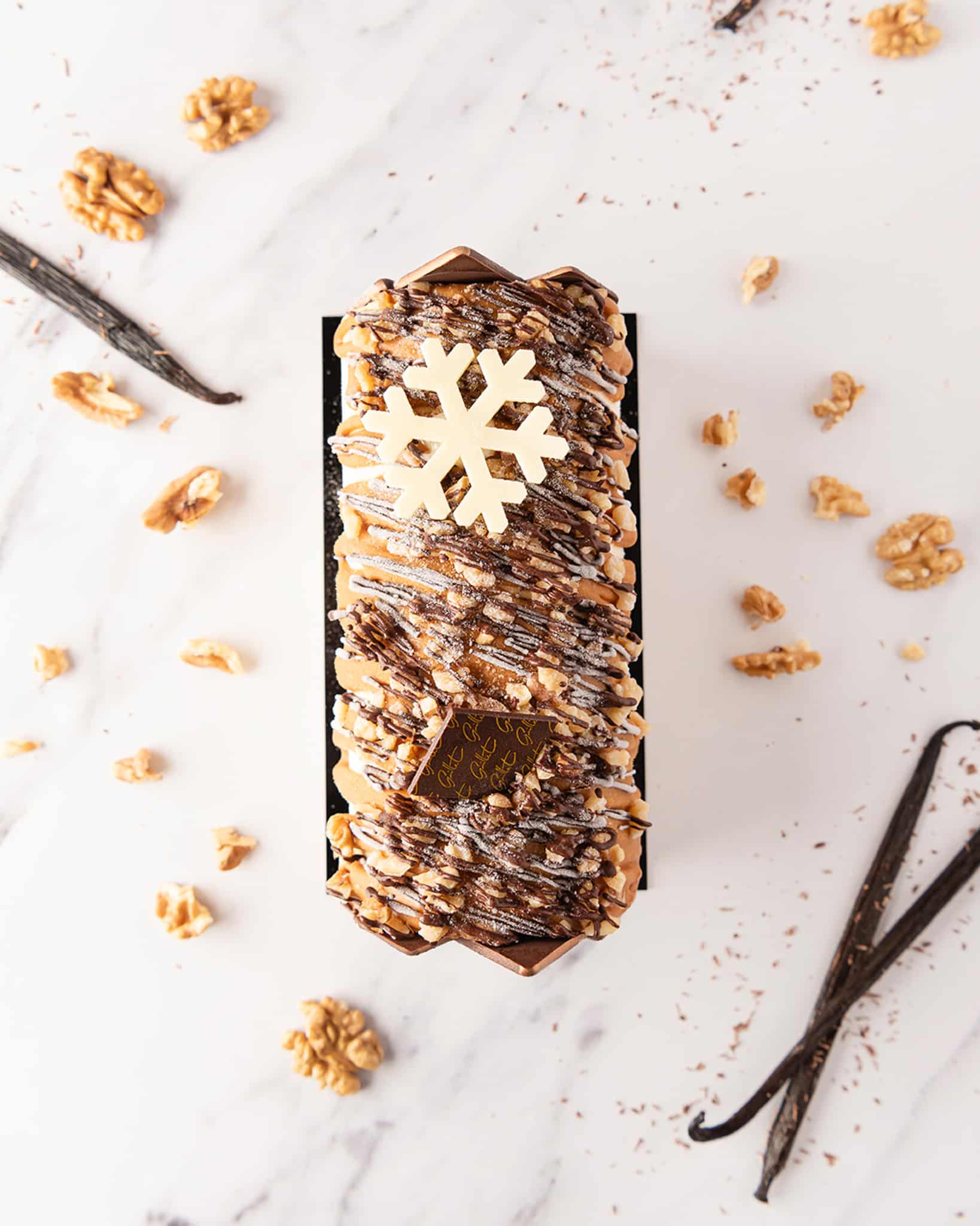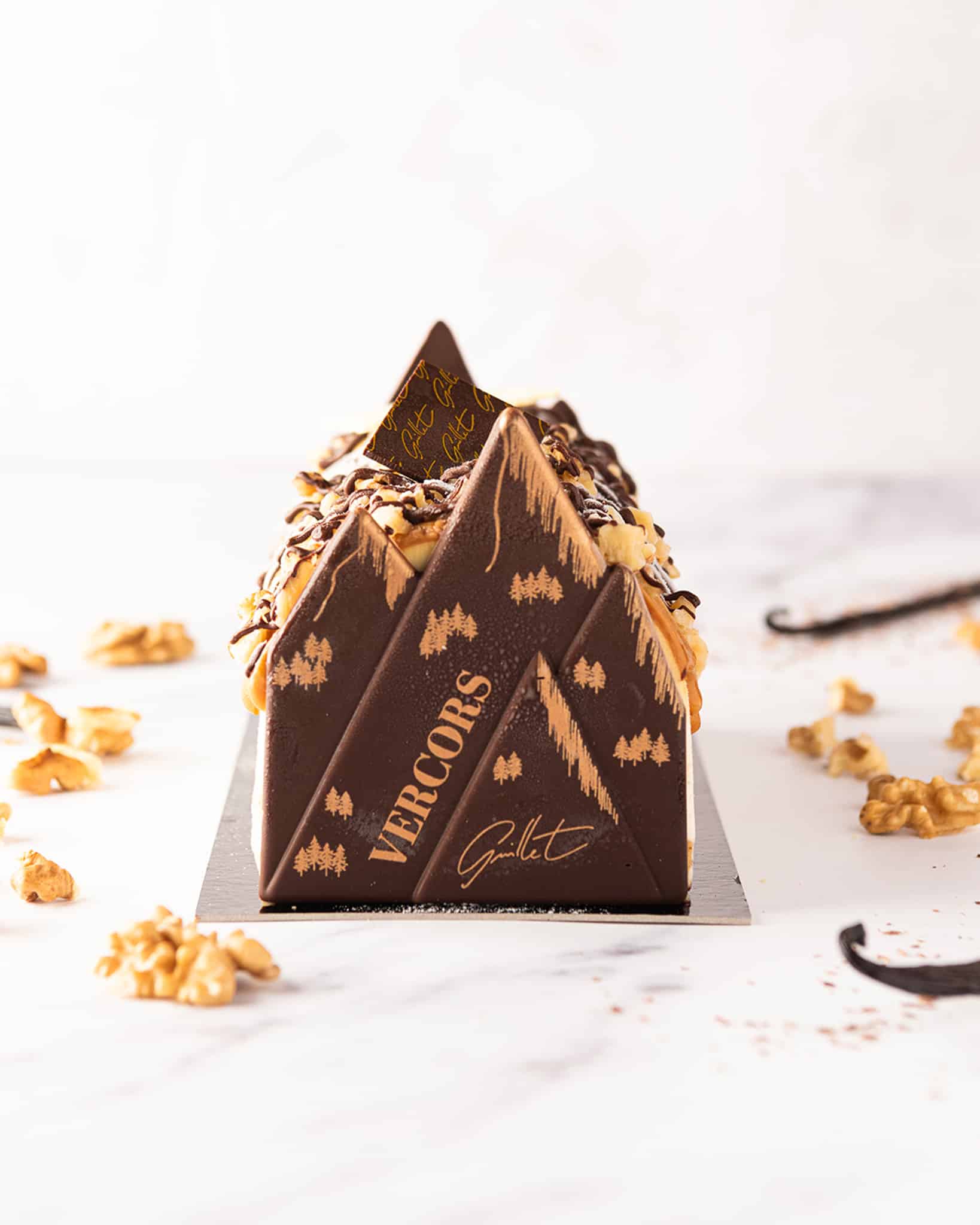 Emblématique de la Maison Guillet, la bûche glacée Vercors incarne la gourmandise et la douceur des fêtes d’hiver.