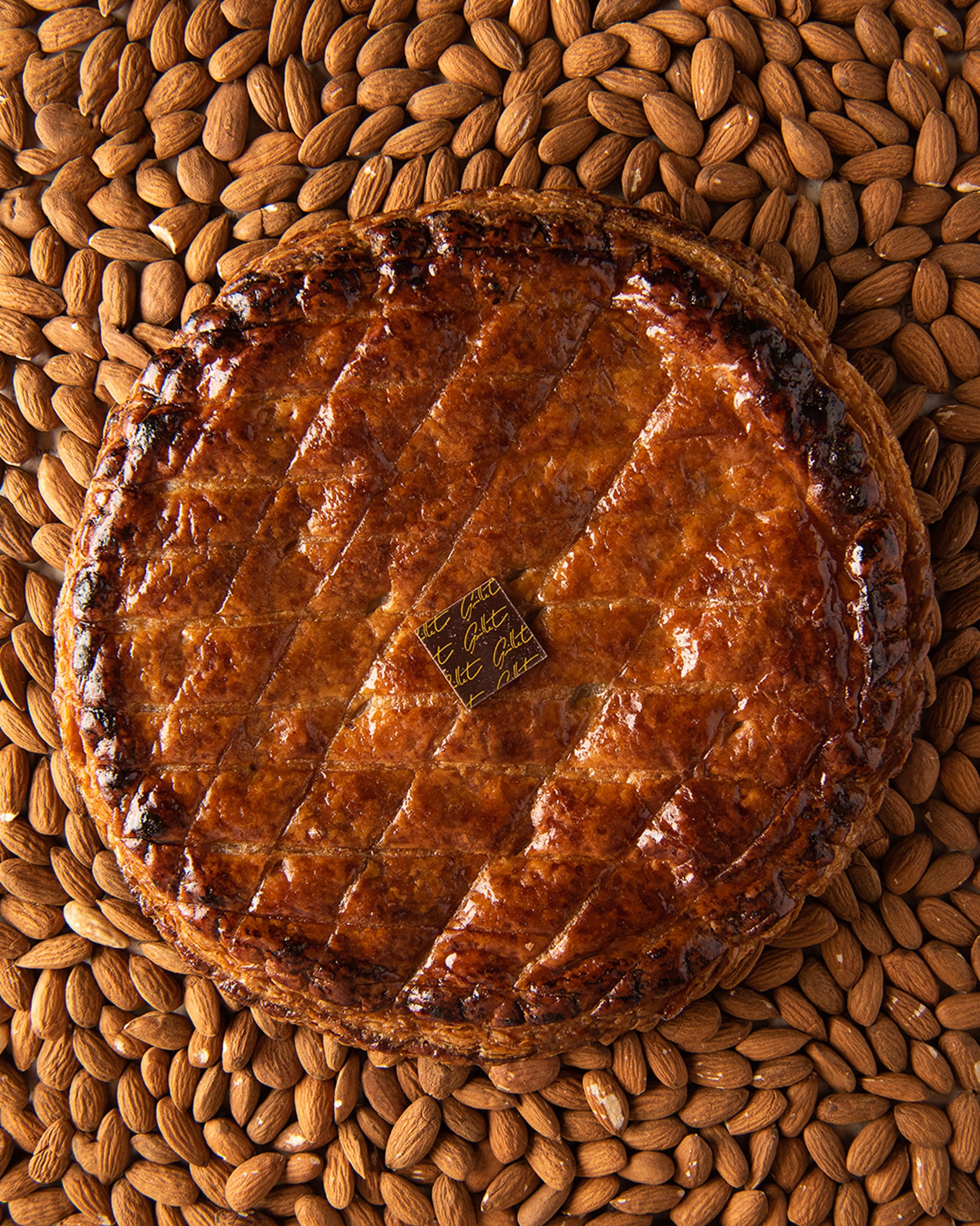 Sous son feuilletage pur beurre, croustillant, doré et caramélisé à la manière Maison Guillet, se cache une frangipane onctueuse aux amandes, enrichie de chocolat fondant, pour une intensité ronde et irrésistible.