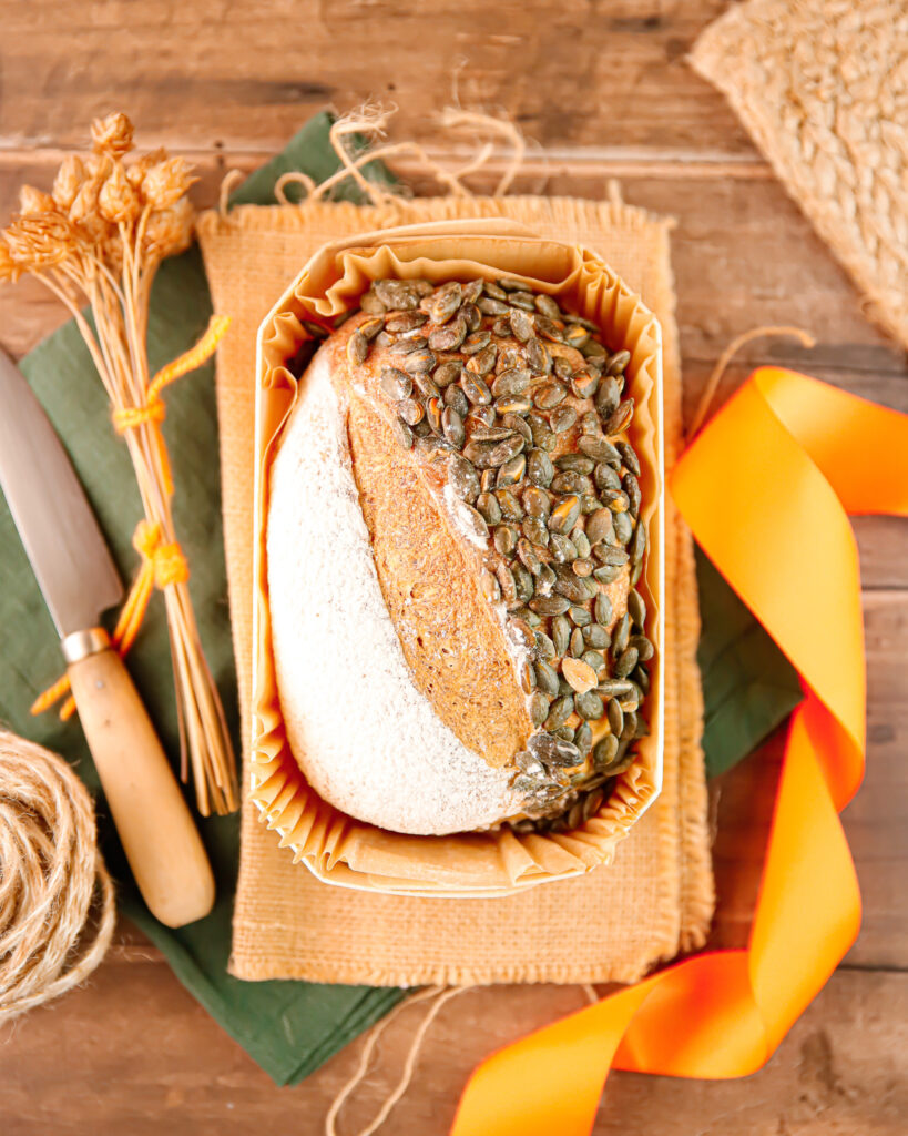 Un pain original, aux accents de saison, parfait à savourer nature, toasté ou en accompagnement d’un fromage doux ou d’un velouté maison.