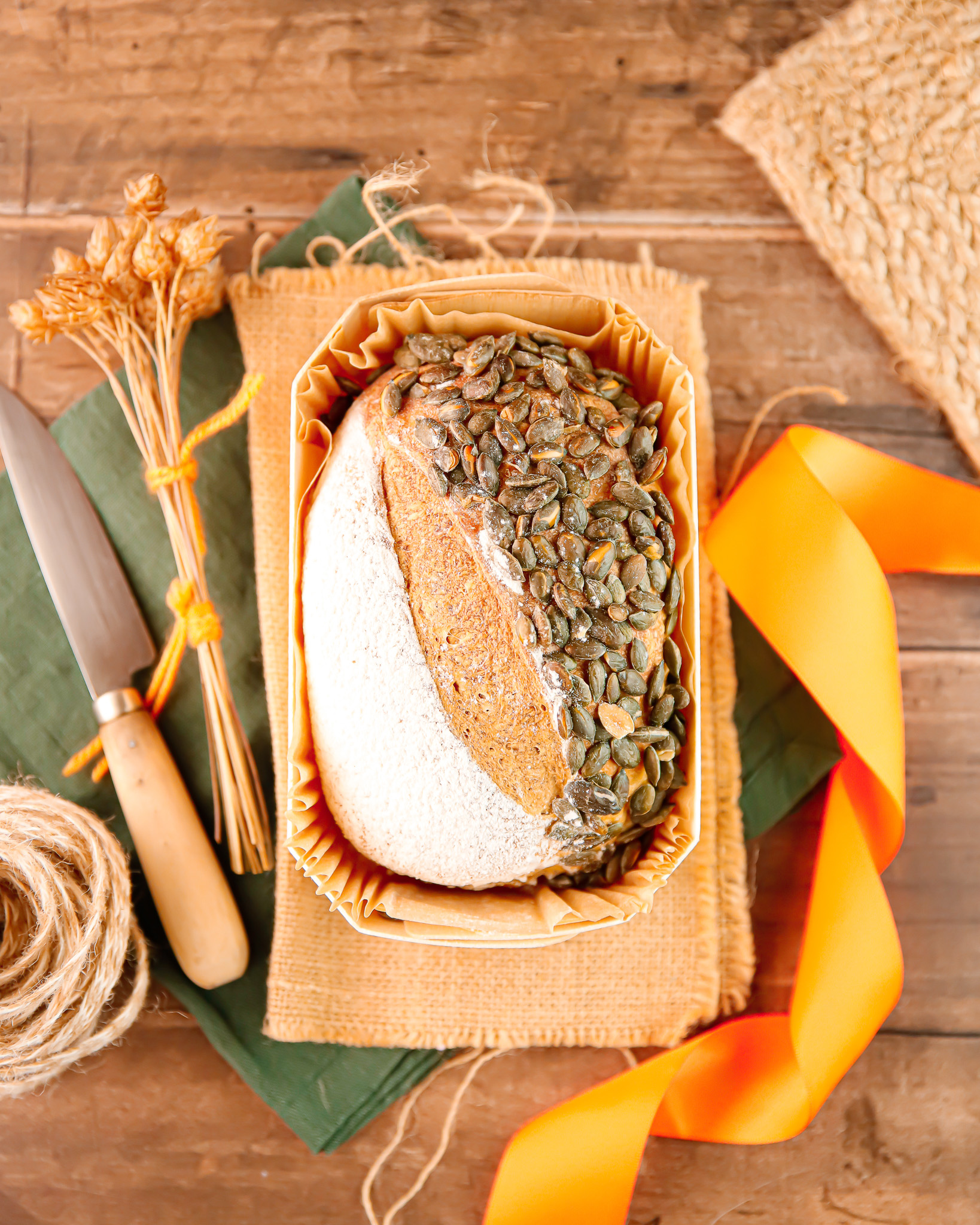 Un pain original, aux accents de saison, parfait à savourer nature, toasté ou en accompagnement d’un fromage doux ou d’un velouté maison.