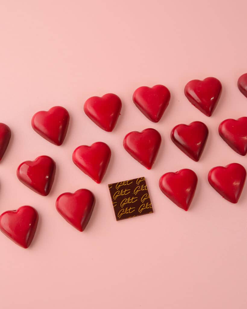 Coeurs en chocolat noir et praliné à l’ancienne.