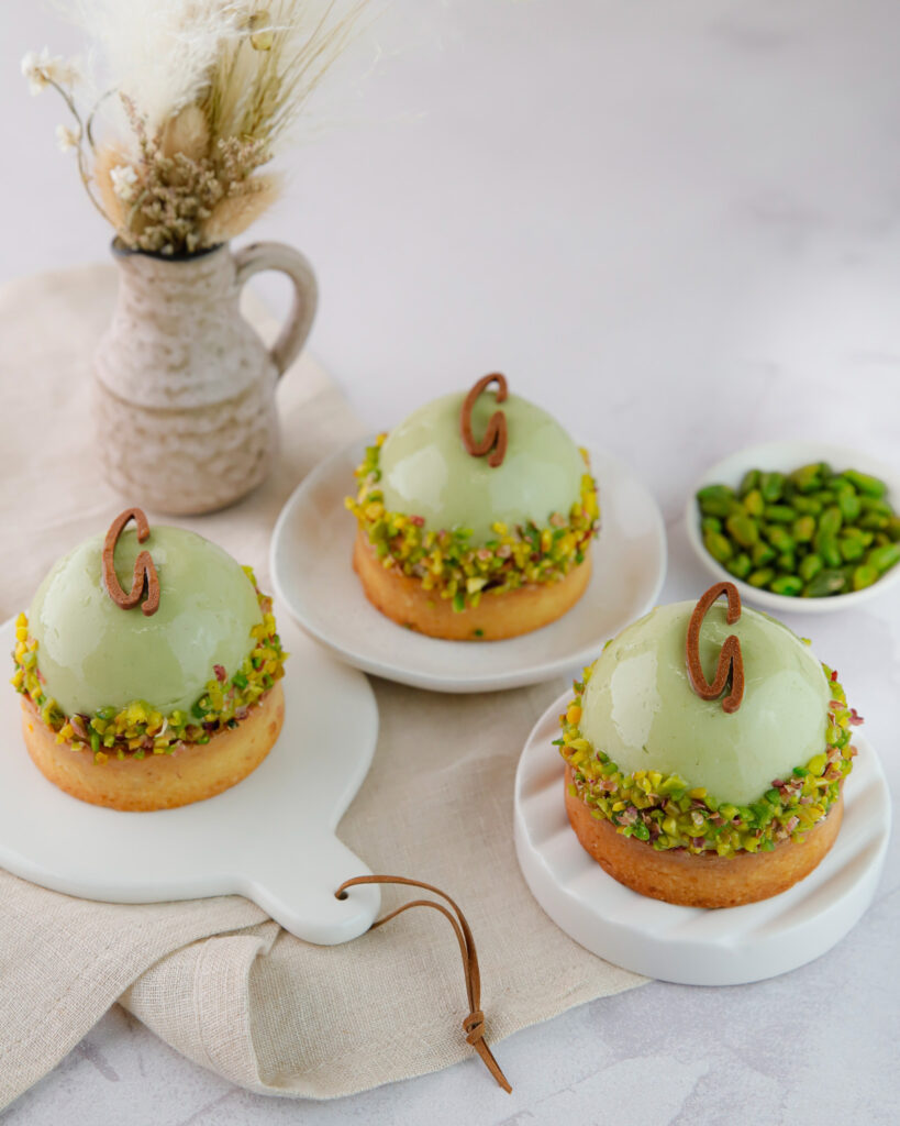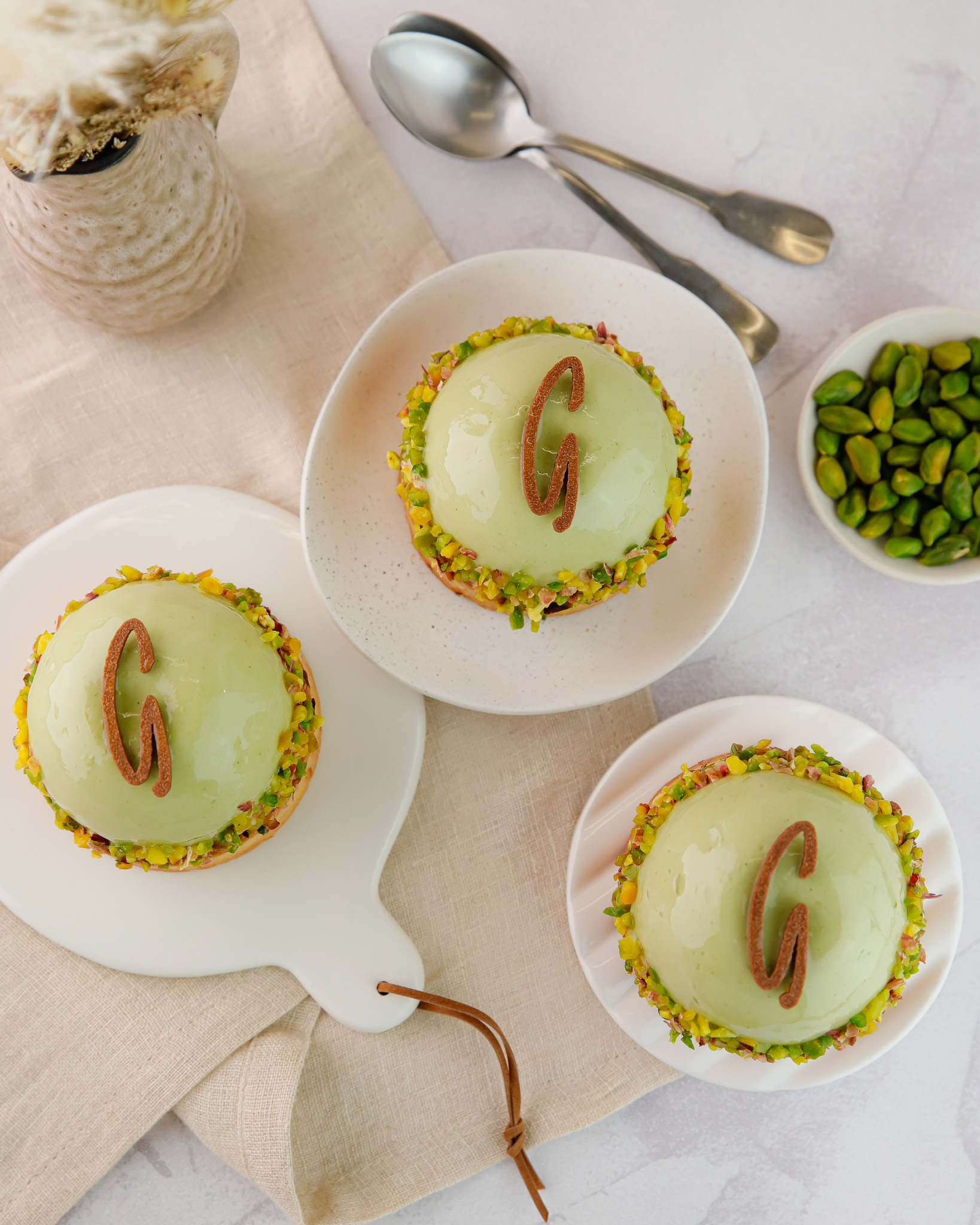 Une chantilly pistache délicate et aérienne vient envelopper le tout avec finesse, apportant une texture légère et une longueur en bouche gourmande.