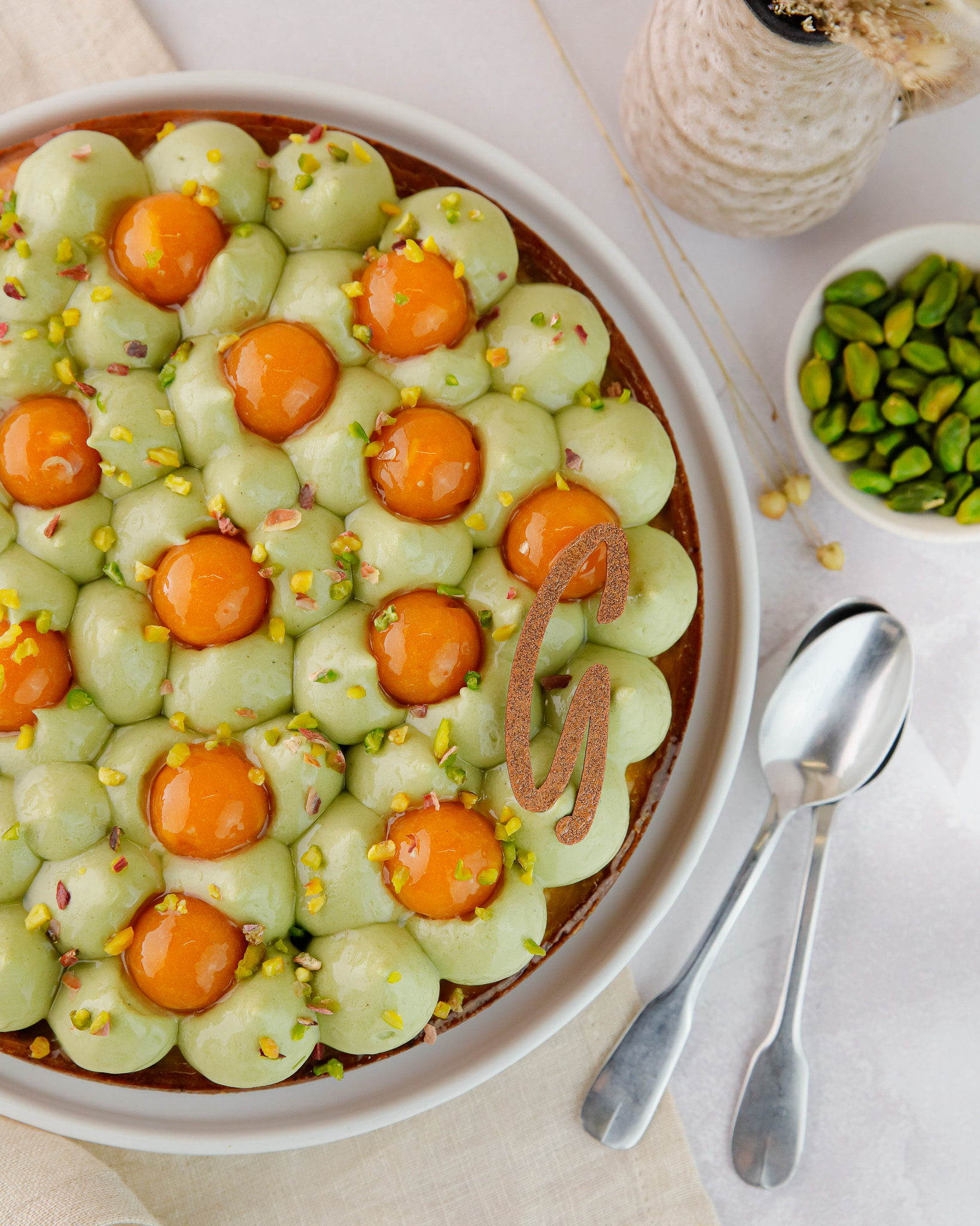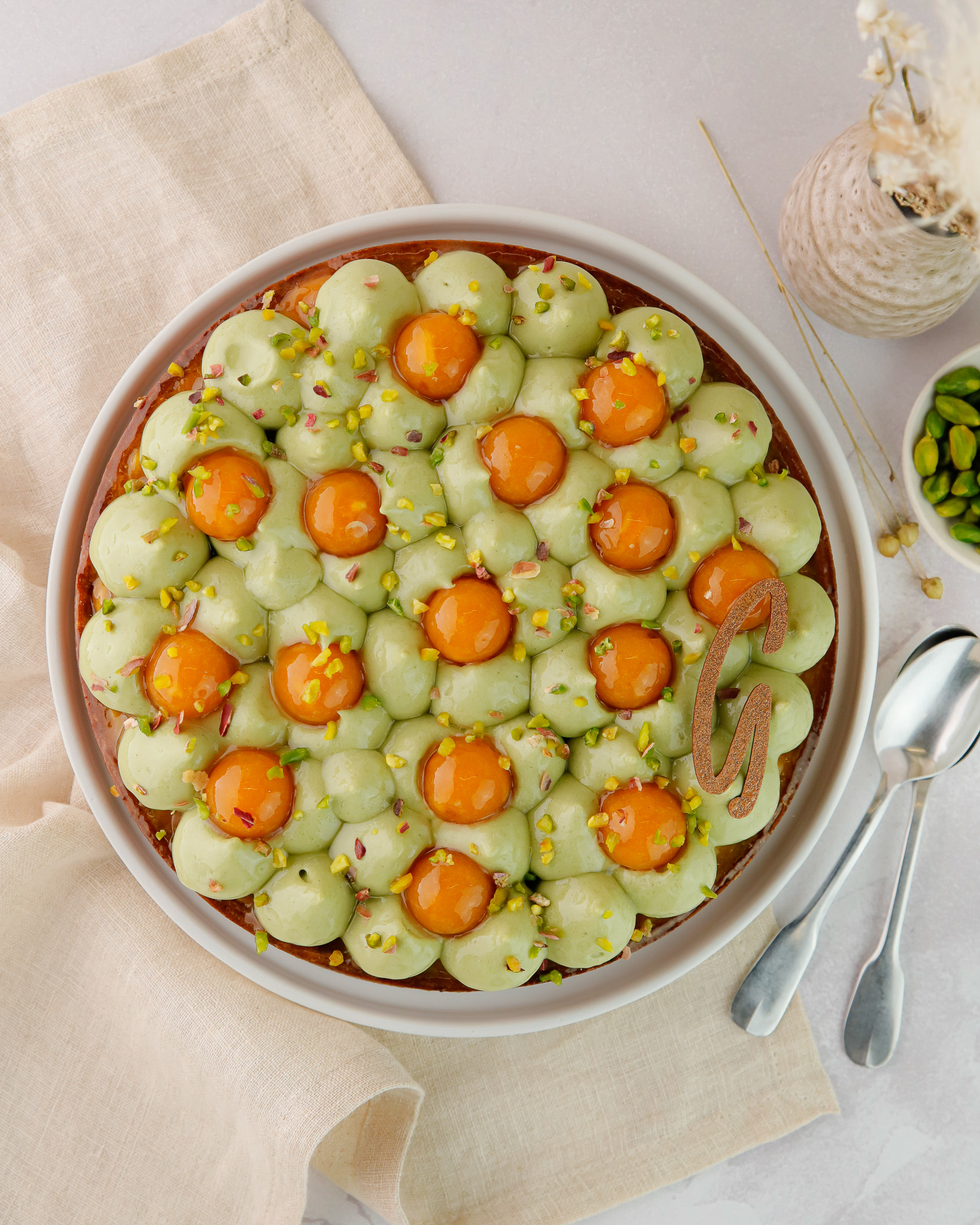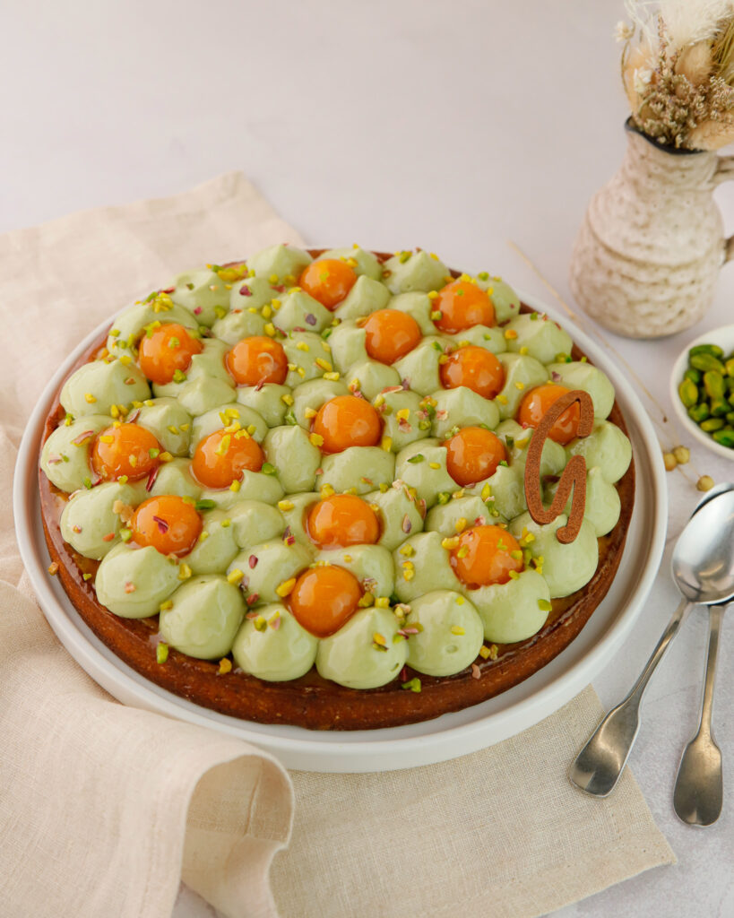 Une tarte estivale entre douceur de la pistache et fraîcheur de l’abricot, gourmande et délicatement parfumée.
